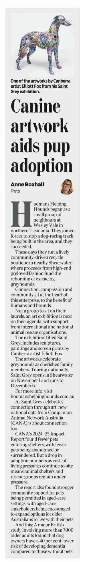 - Canine artwork aids pup adoption, Mercury Newspaper article by Anne Boxhall, 20 October 2025